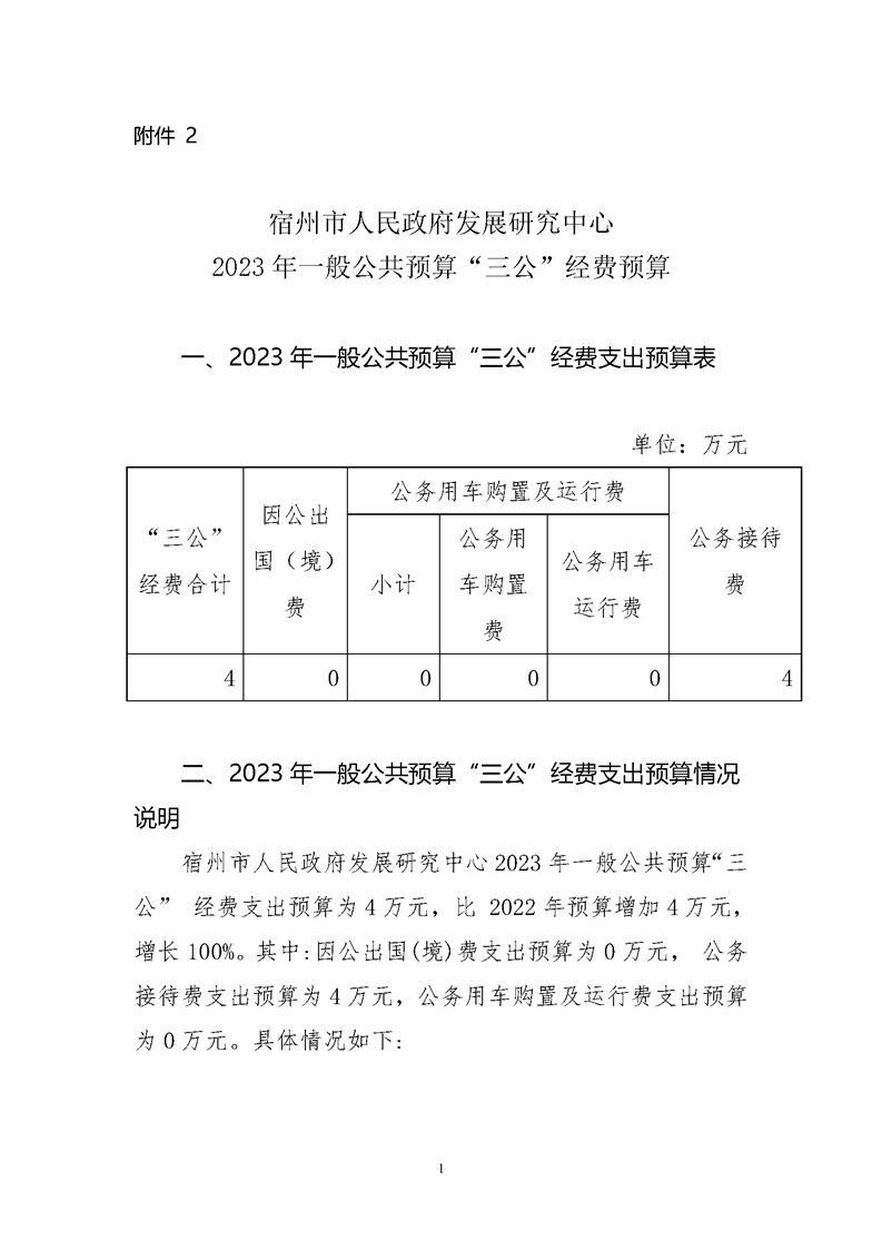 宿州市人民政府发展研究中心2023年“三公”经费预算公开 |