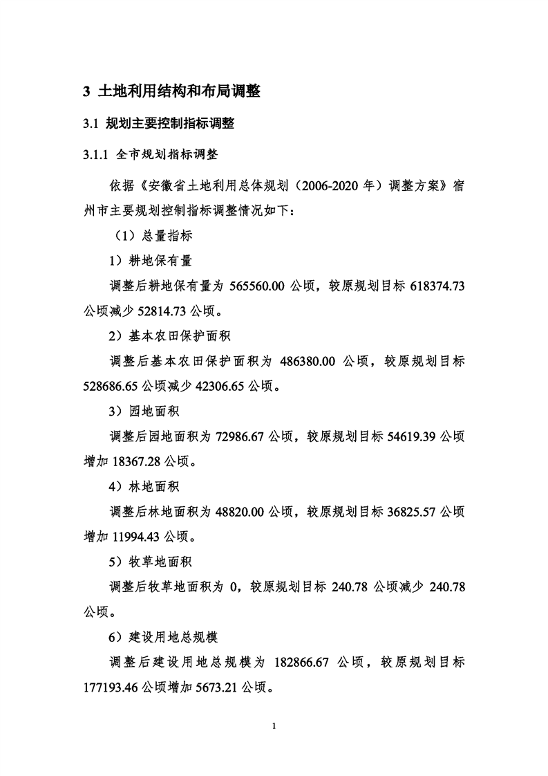宿州市土地利用总体规划(2006-2020年)调整方案 |