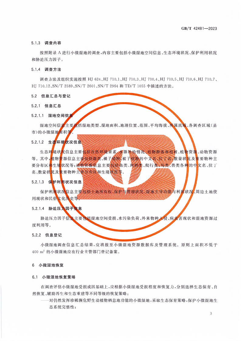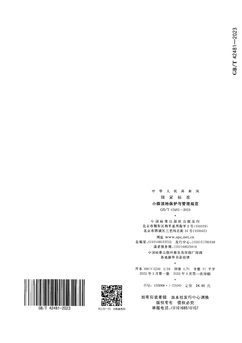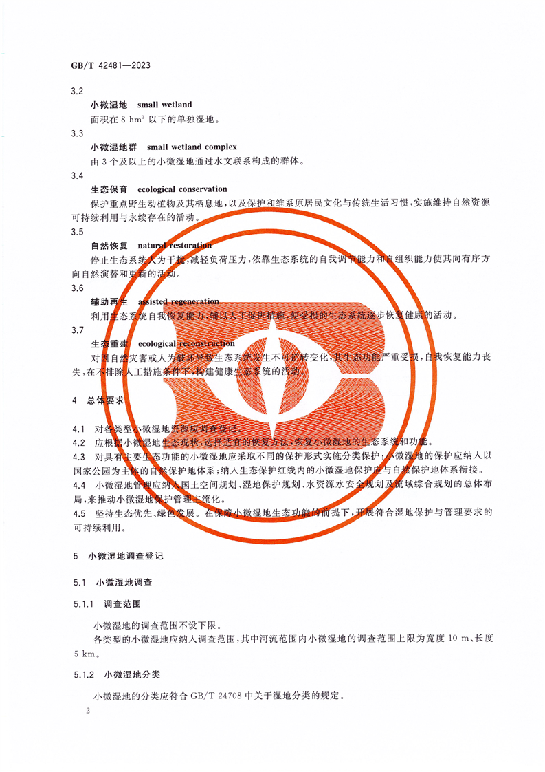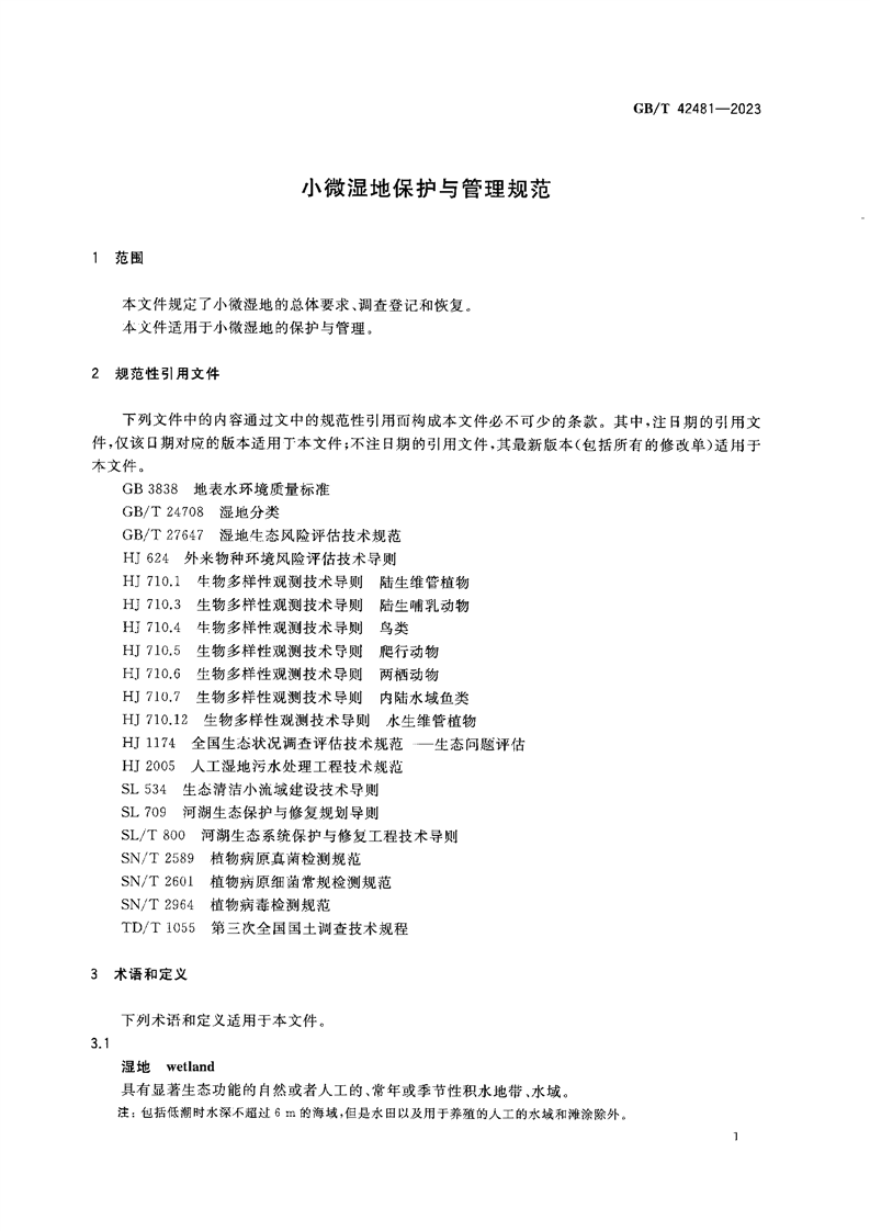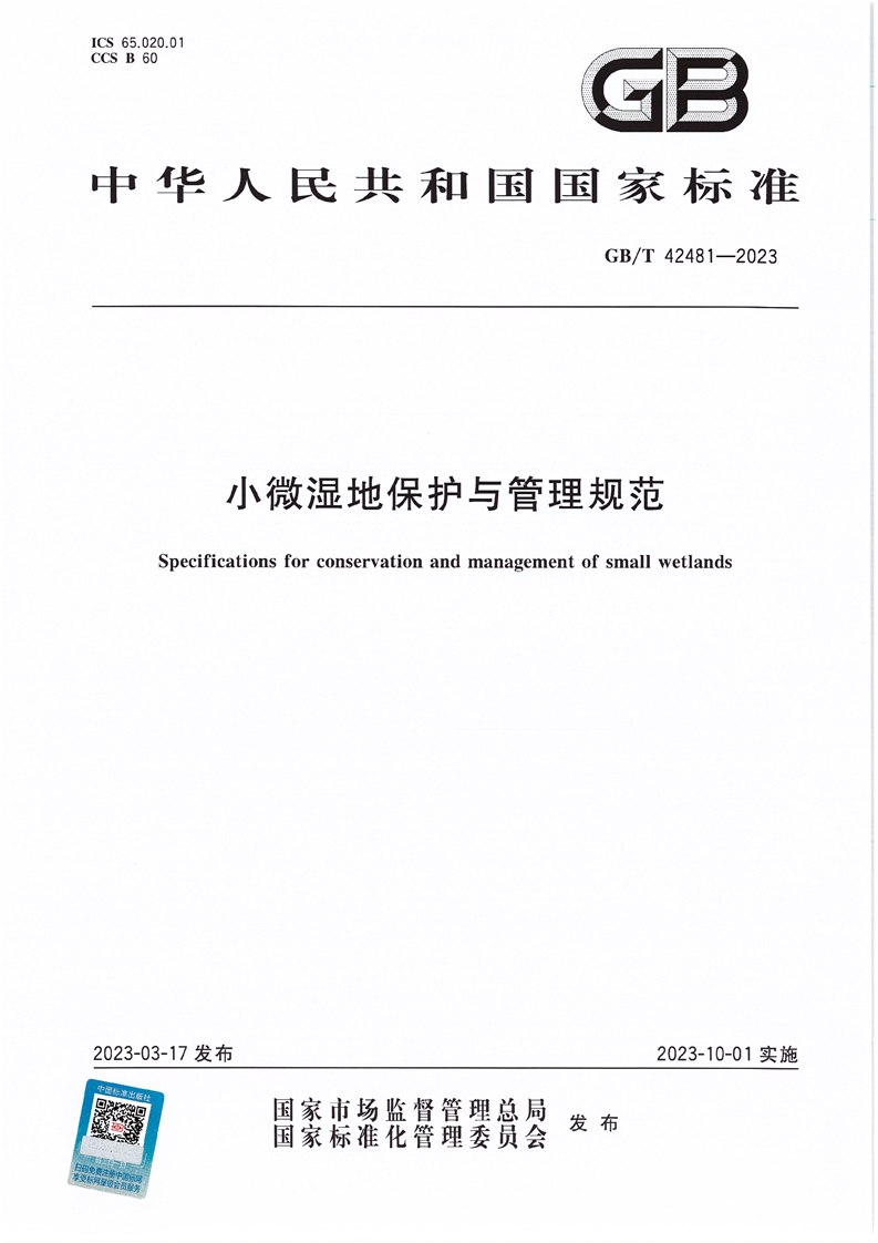 小微湿地保护与管理规范(GB/T42481-2023) |
