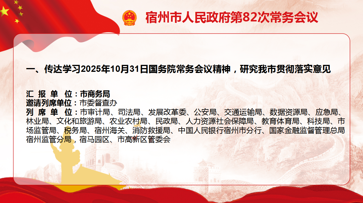 会议强调,要聚焦改革创新,充分发挥联动创新区等开放平台作用,落实好“准入又准营”政策举措,持续提升对外开放成效。要锚定场景创新,依托全省一体化数据基础平台宿州市子节点,推动场景与移动端、自助端、窗口端深度融合,赋能政务信息化高质量发展。要压实森林防灭火工作责任,严格火源管控,强化联防联控,加强宣传教育,切实筑牢森林防火屏障。
