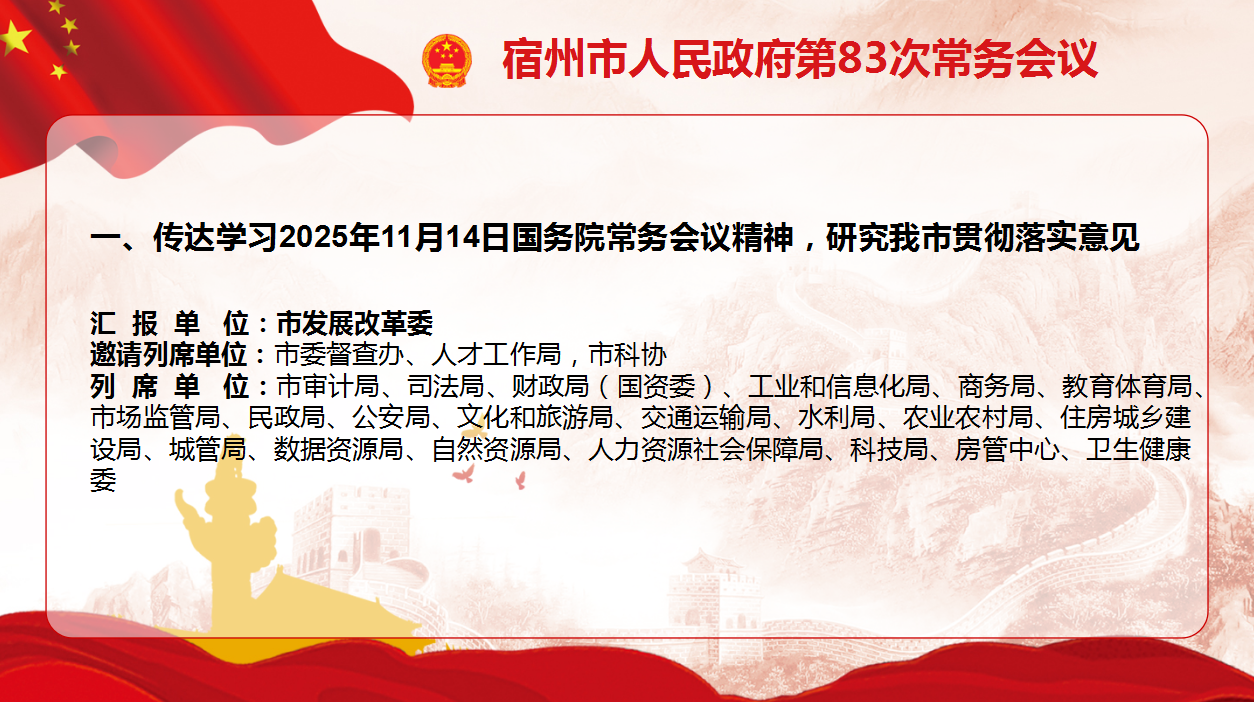 会议强调,要扎实推进“两重”项目建设,统筹抓好“硬投资”和“软建设”,最大限度释放“两重”建设对经济增长、结构优化和动能转换的综合效益。要有效增强供需适配性,丰富消费供给,促进跨界融合,畅通流通体系。要全面夯实教育强国根基,加强中小学科技教育,推动基础教育扩优提质,深入实施县域普通高中振兴行动计划,促进职普融通、产教融合。要加强商标保护运用,推进商标执法标准化建设,严厉查处商标侵权假冒违法行为。要统筹推进殡葬管理与服务,持续推进城乡公益性公墓建设,加强重点领域执法检查,常态化开展殡葬政策解读和移风易俗宣传,倡树文明、绿色、节俭殡葬新风。