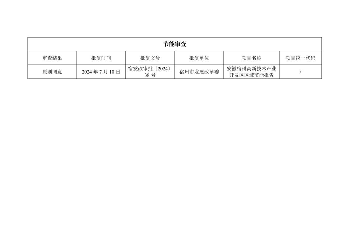 宿发改审批〔2024〕38号安徽宿州高新技术产业开发区区域节能报告节能审查公示