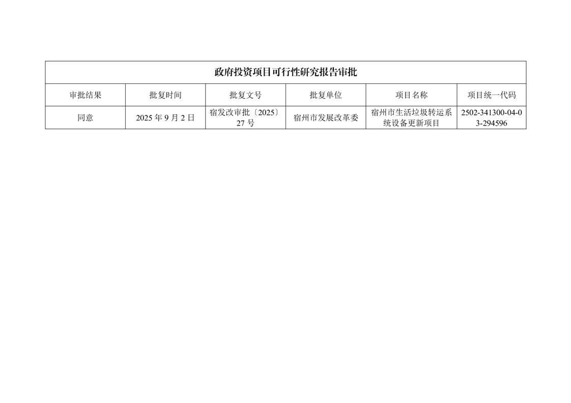 宿州市生活垃圾转运系统设备更新项目可行性研究报告审批公开 |