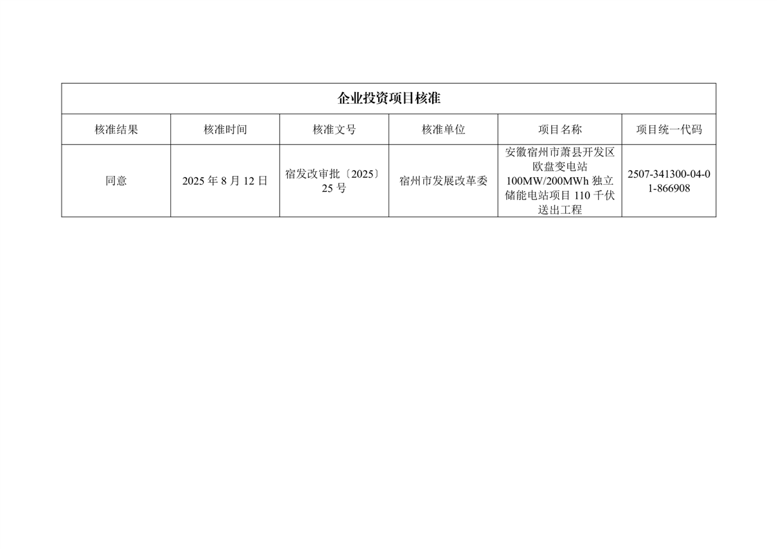 安徽宿州市萧县开发区欧盘变电站100MW200MWh独立储能电站项目110千伏送出工程核准项目核准公开 |