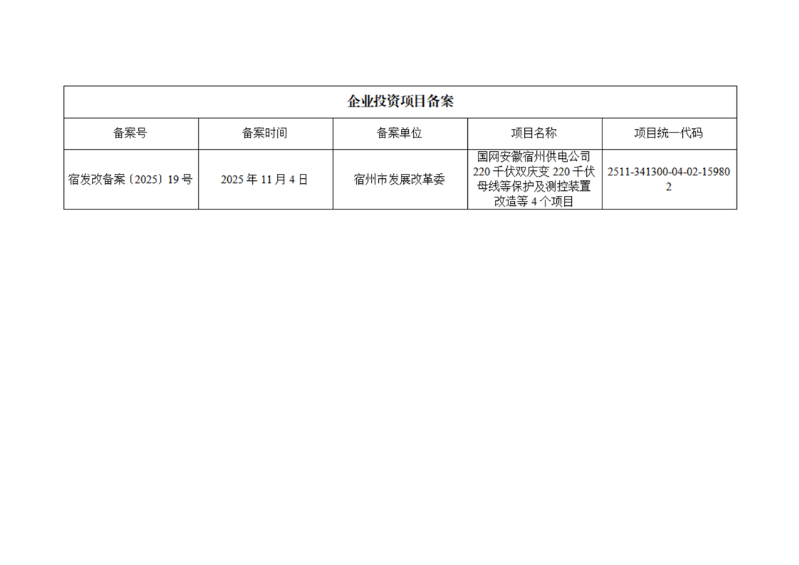 国网安徽宿州供电公司220千伏双庆变220千伏母线等保护及测控装置改造等4个项目备案公开