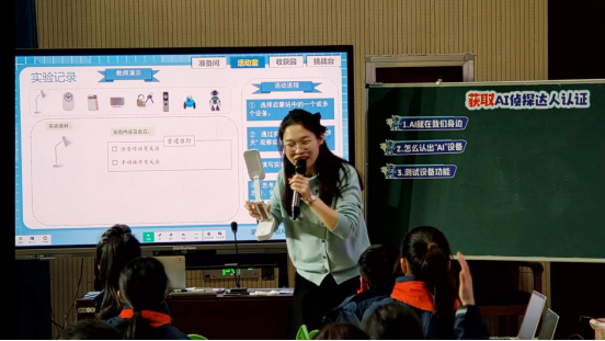 宿州市第一小学环宇校区尹慧慧老师执教的人工智能通识教育课例《获取AI侦探达人认证——人工智能概念》成为本次活动的典型样本。该课例以“获取AI侦探达人认证”为项目任务,为学生构建理解人工智能概念的认知支架。从首日研讨到次日改进,这一完整的课例研究流程,清晰展现了素养导向的教学设计如何在实际课堂中落地与优化。宿州市第十一中学李东亚老师作《快速胜任人工智能通识教学》微讲座,为一线教师提供了切实可行的教学路径与策略支持。