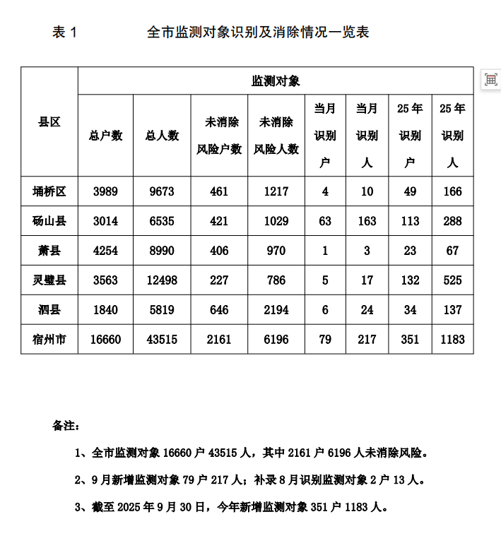 截至2025年9月底全市脱贫户、监测对象基本情况