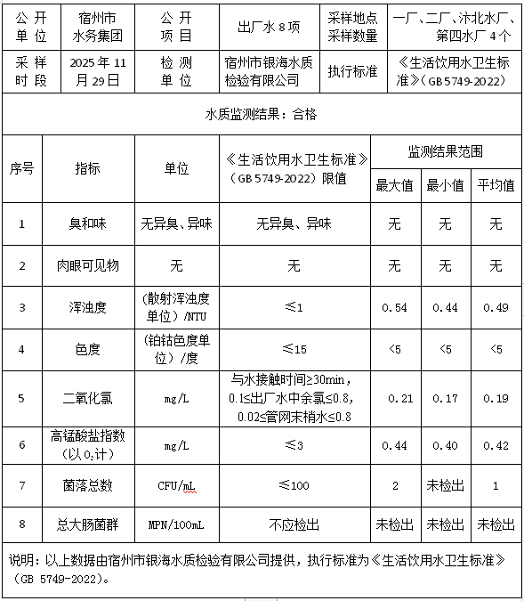 2025年11月29日出厂水水质信息 |
