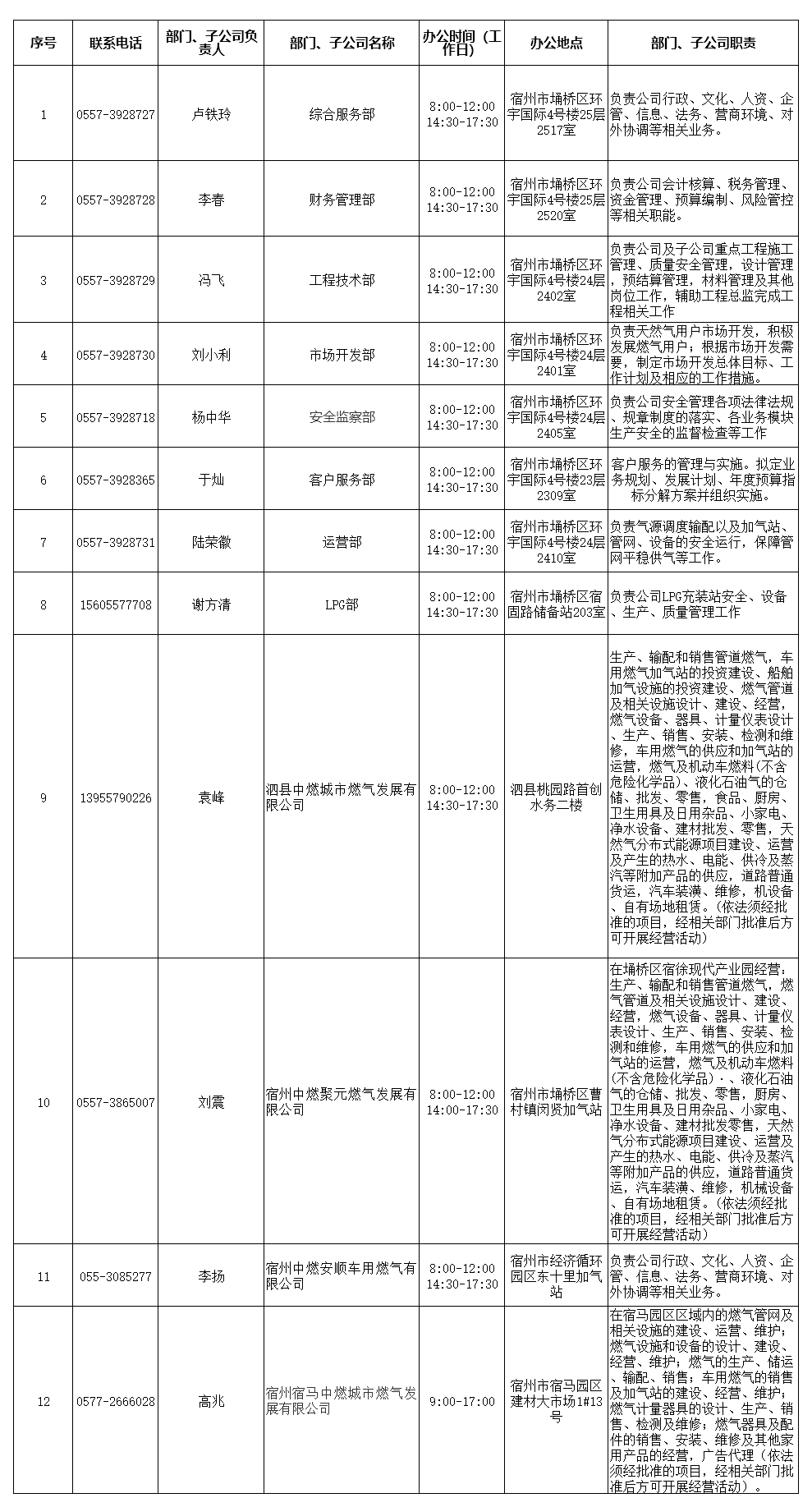 宿州中燃机构及下属单位