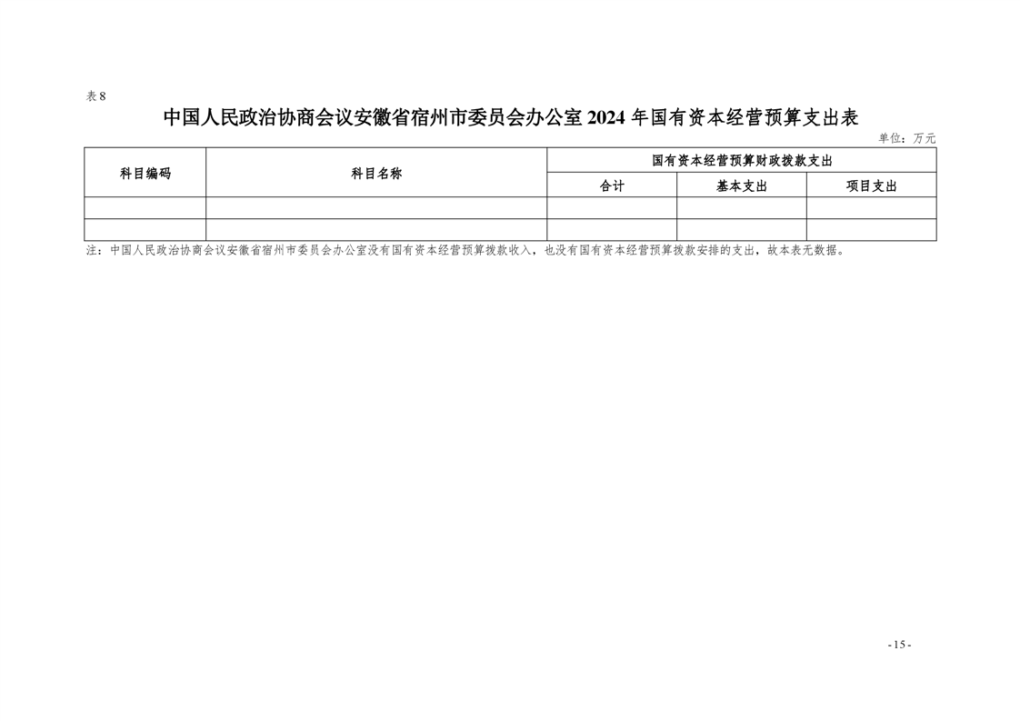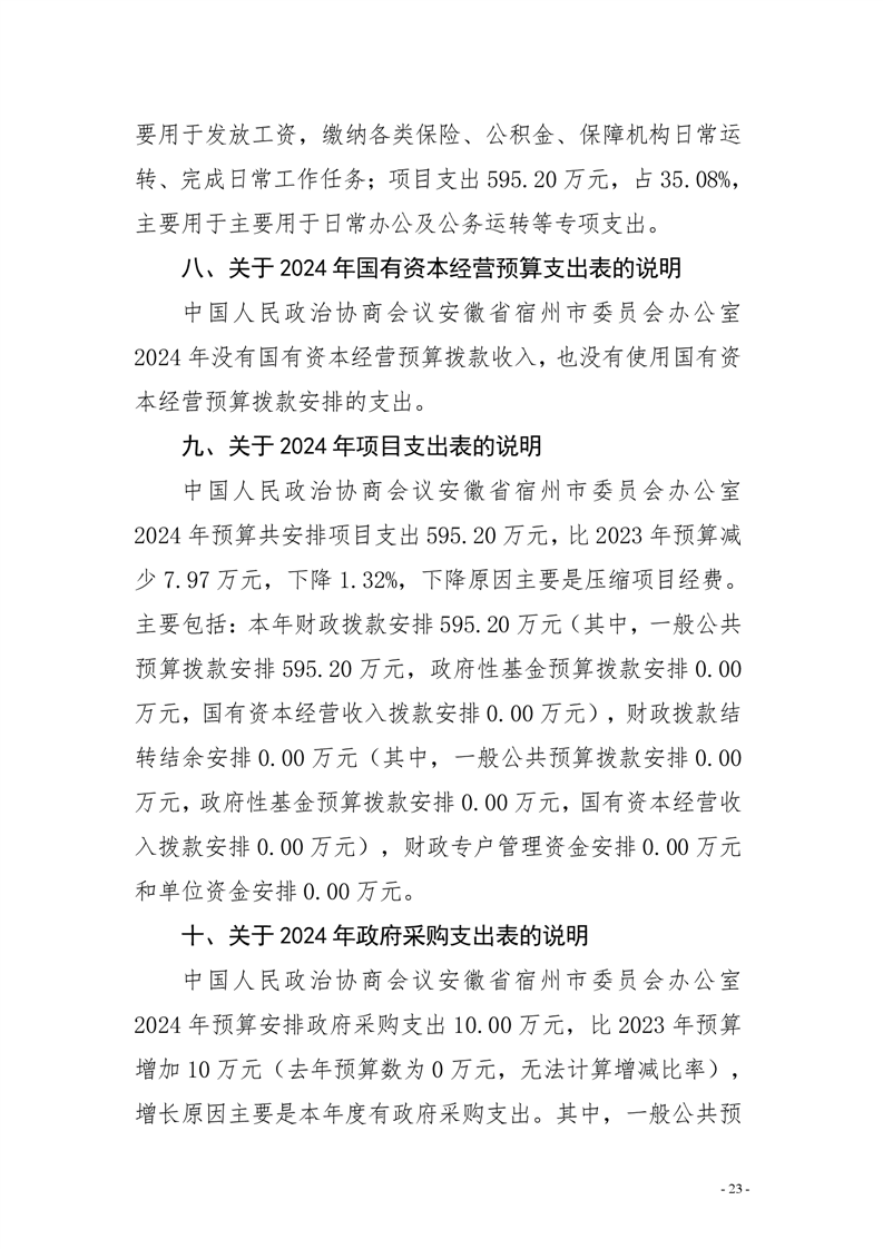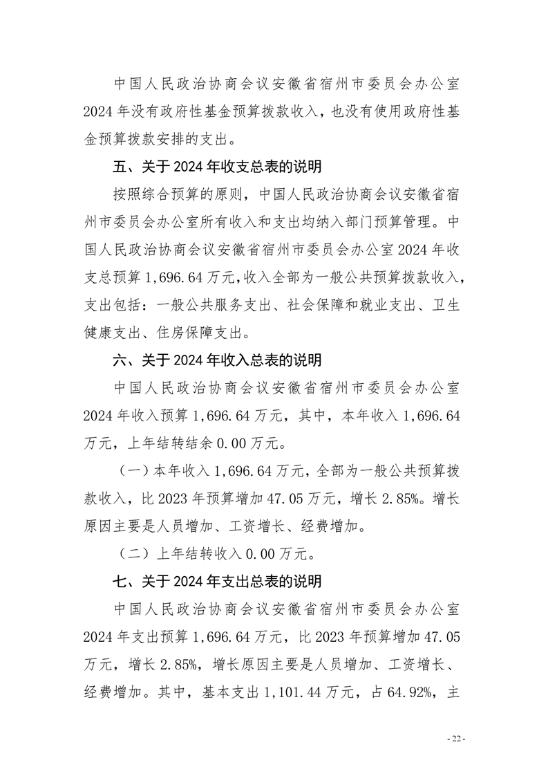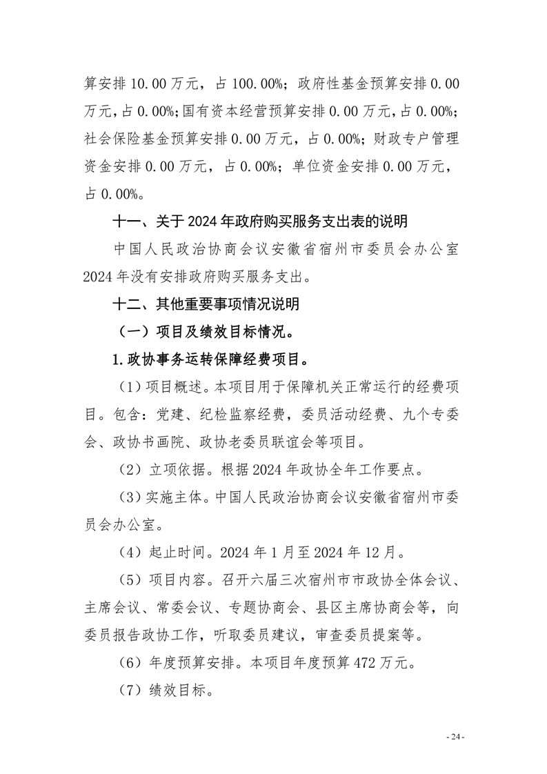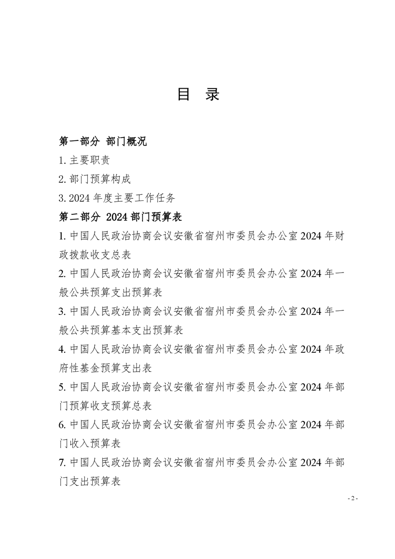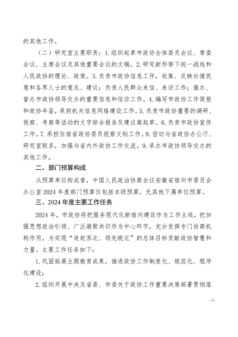 中国人民政治协商会议安徽省宿州市委员会办公室2024年部门预算公开 |