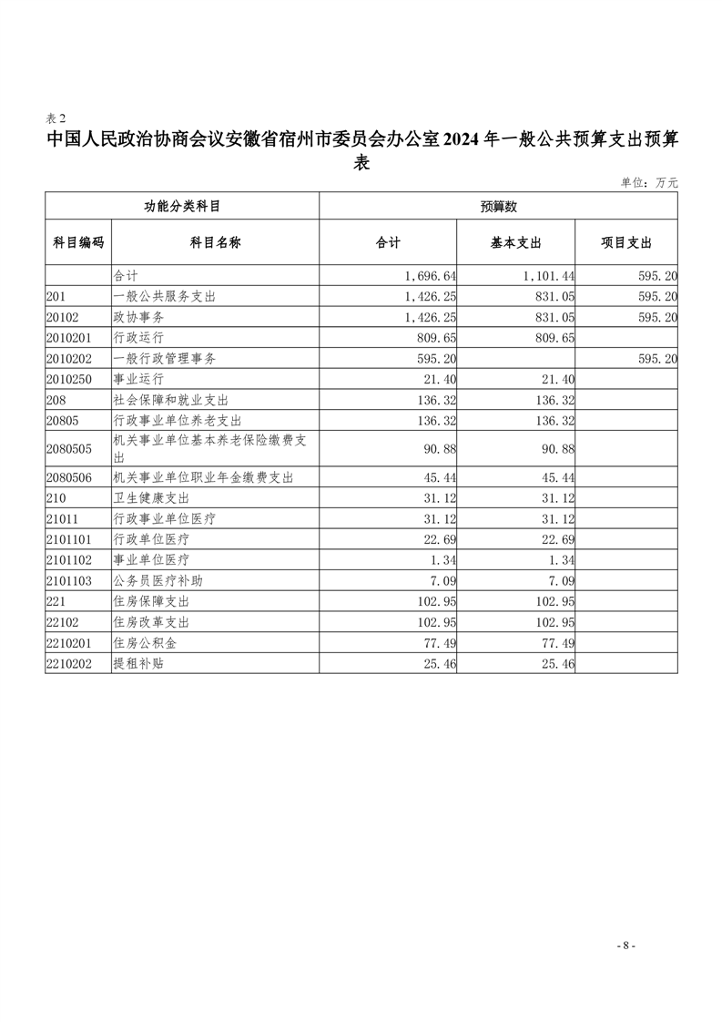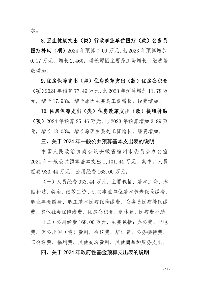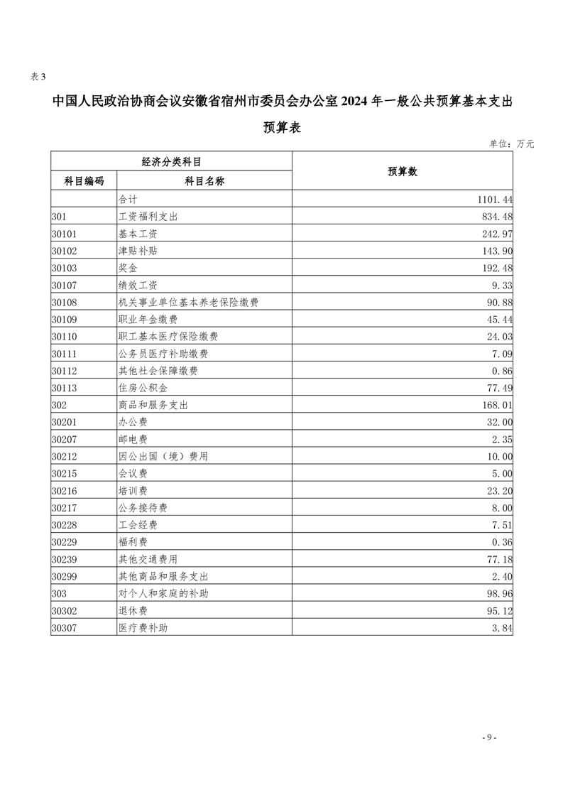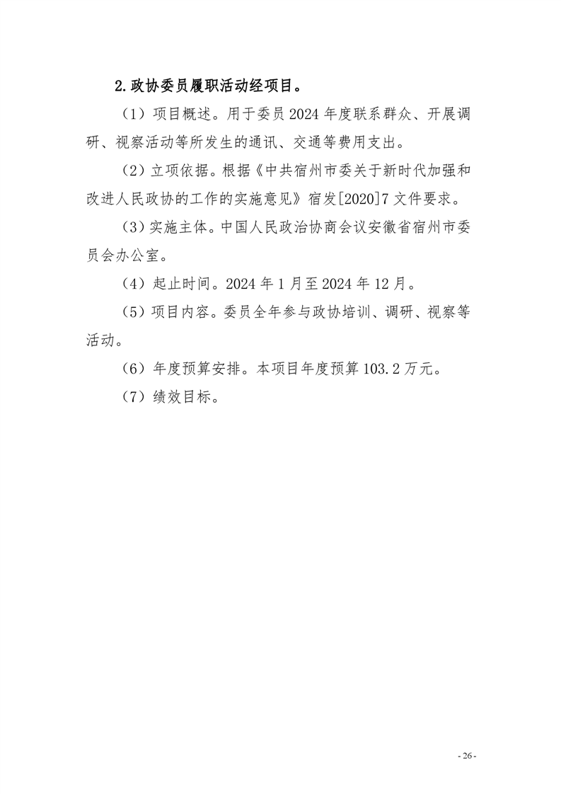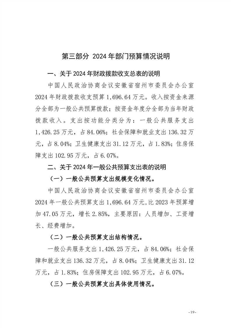 中国人民政治协商会议安徽省宿州市委员会办公室2024年部门预算公开 |