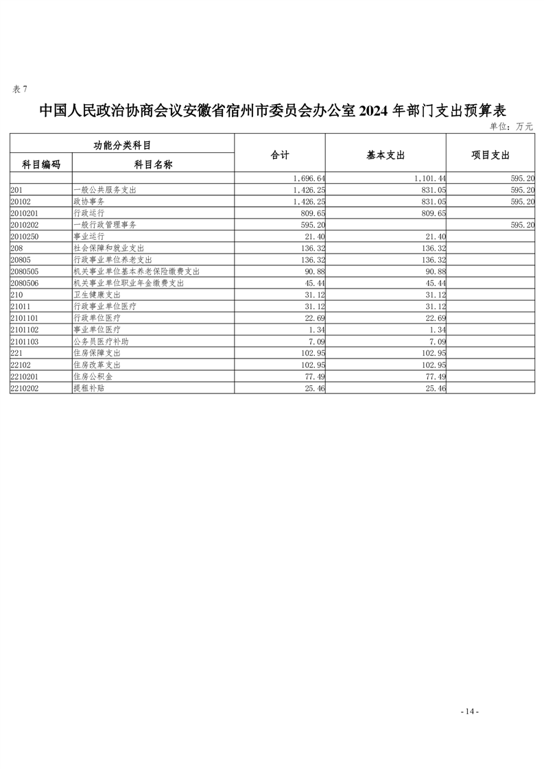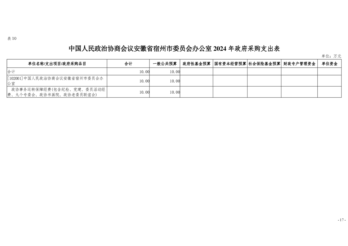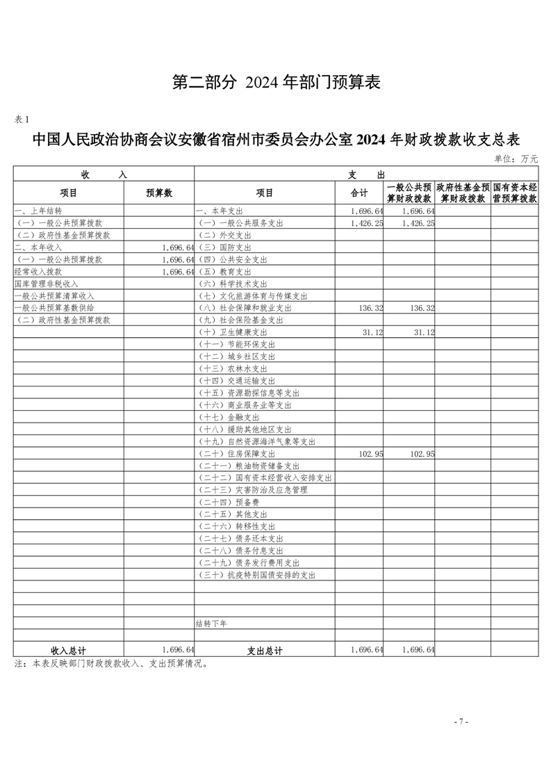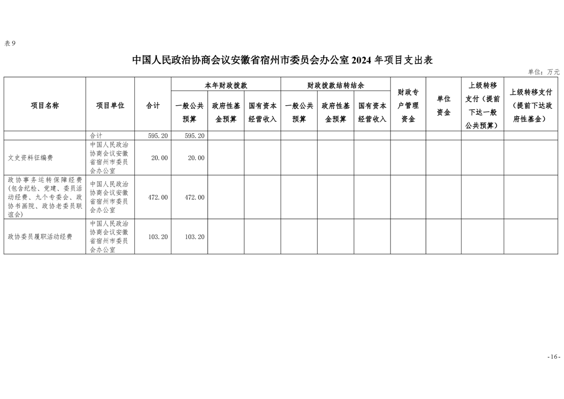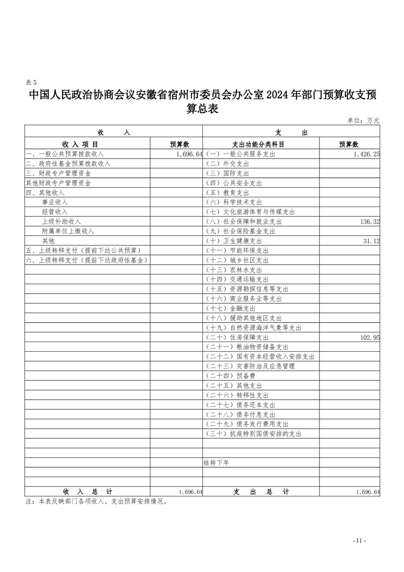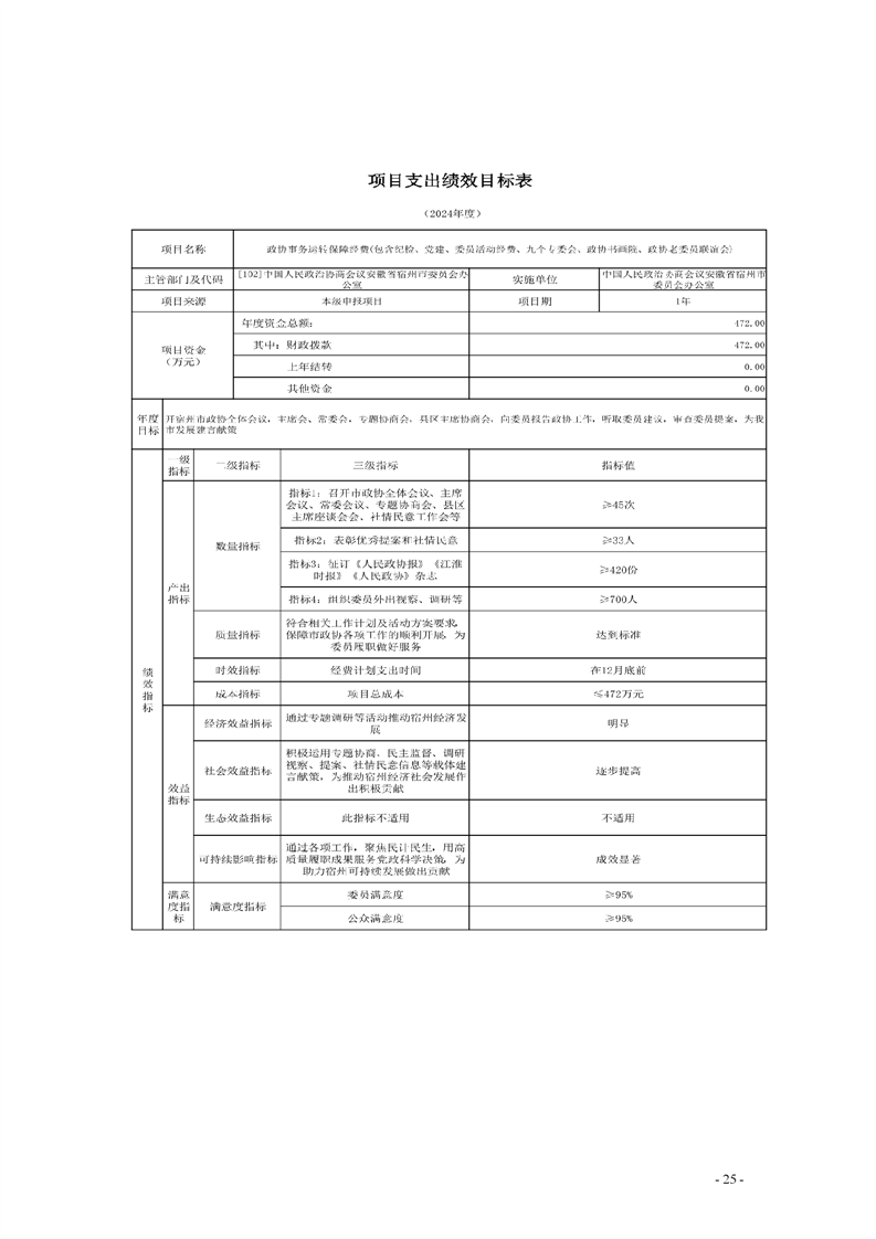 中国人民政治协商会议安徽省宿州市委员会办公室2024年部门预算公开 |