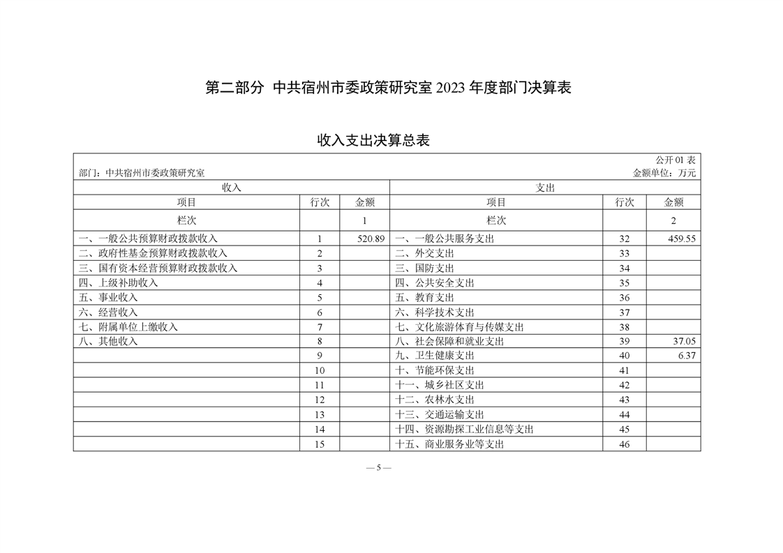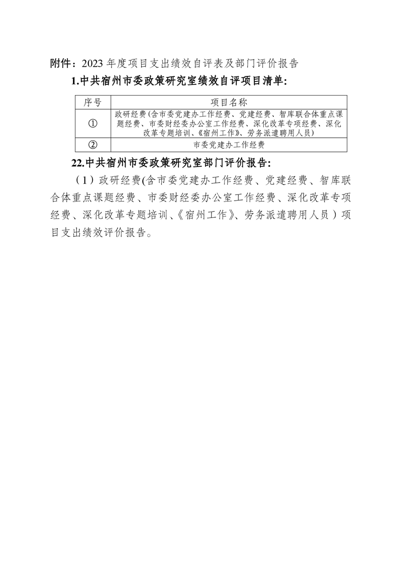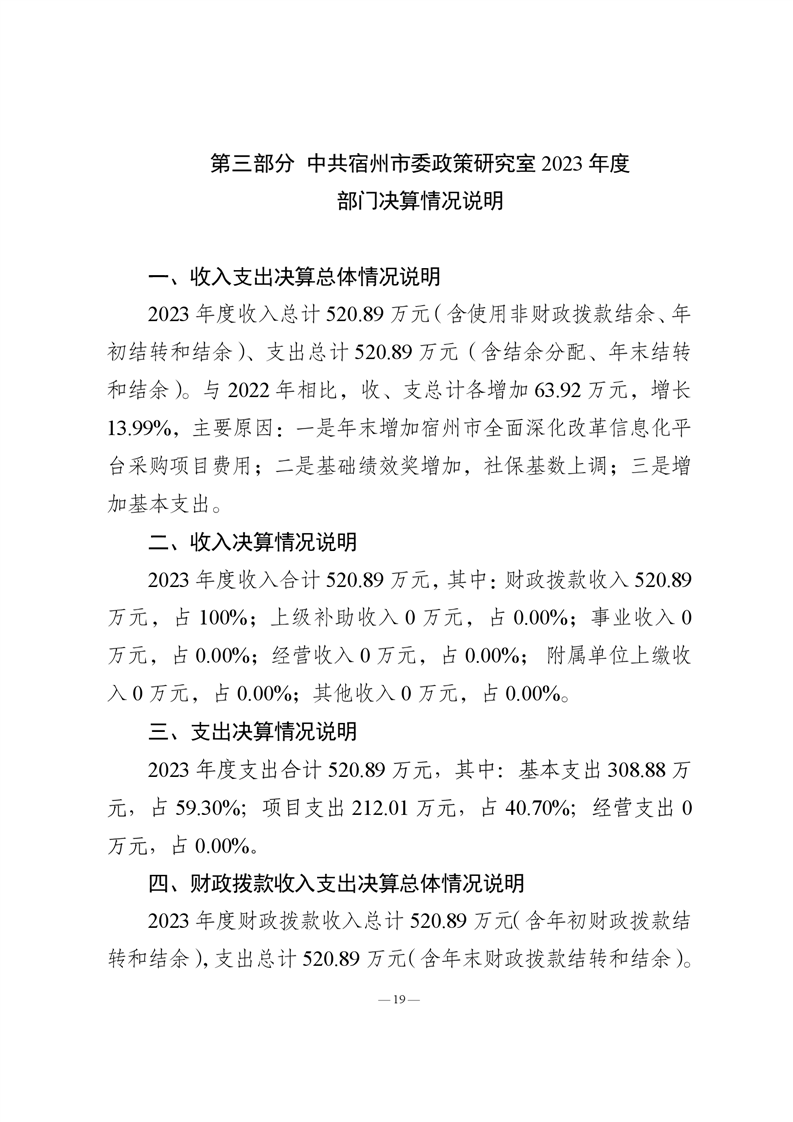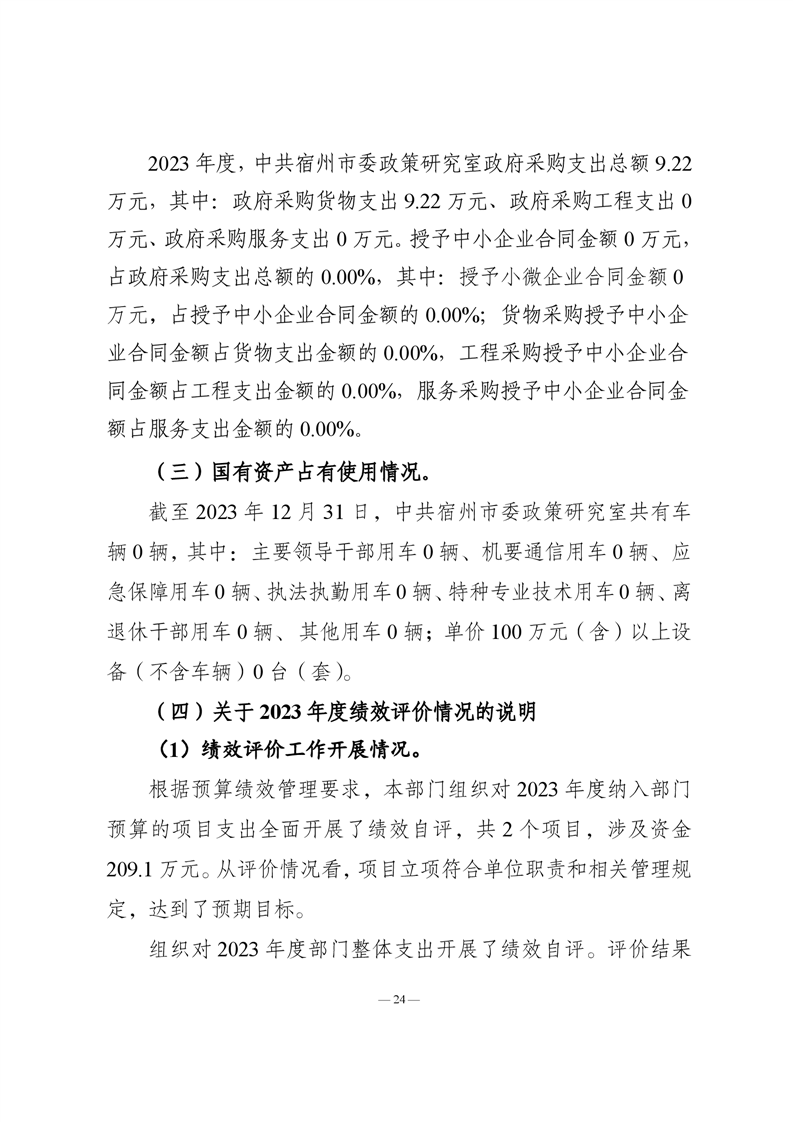 中共宿州市委政策研究室2023年度部门决算 |