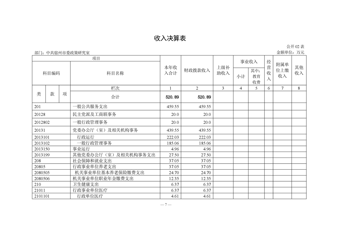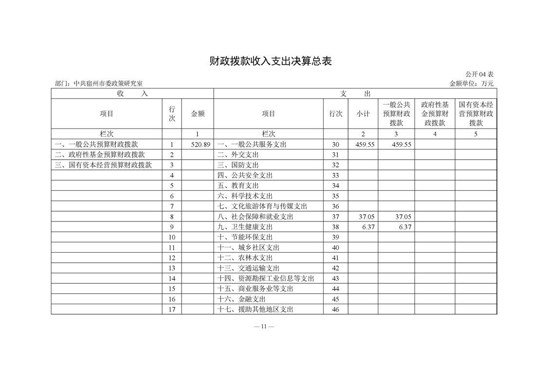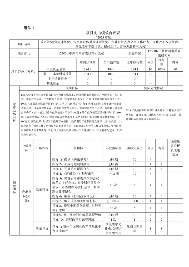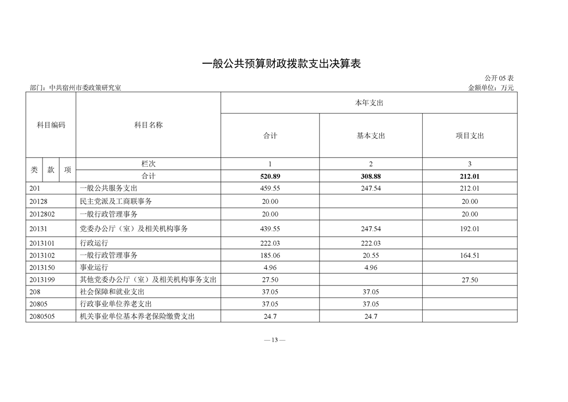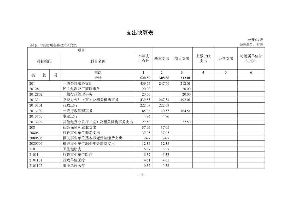 中共宿州市委政策研究室2023年度部门决算 |