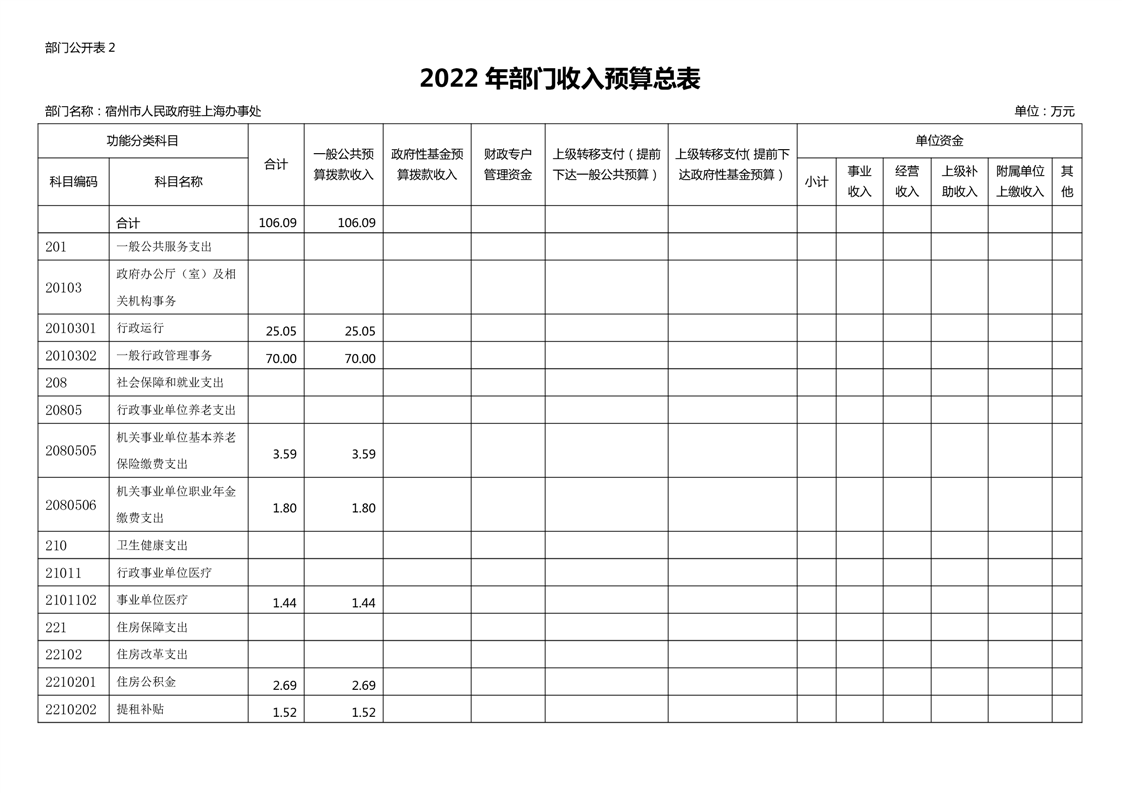 宿州市人民政府驻上海办事处2022年预算公开 |