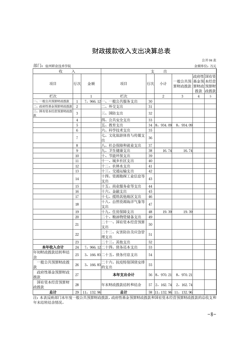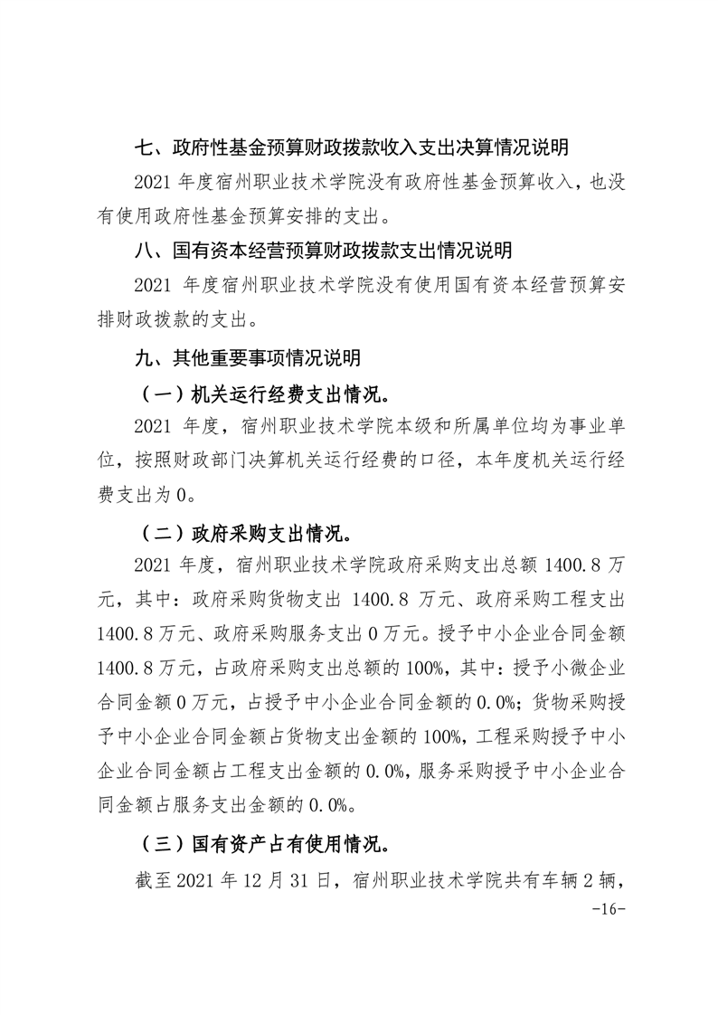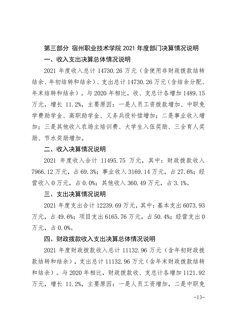 宿州职业技术学院2021年度部门决算 |