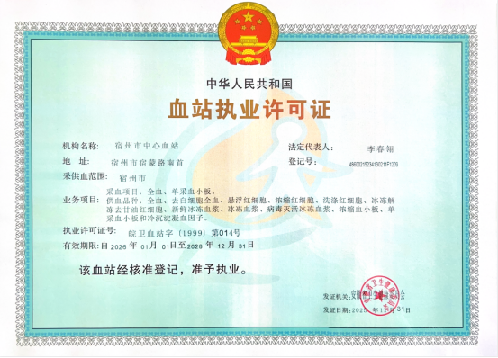 机构职能:按照安徽省人民政府卫生行政主管部门的要求,在宿州市范围内开展无偿献血者的招募、血液的采集与制备、临床用血供应以及医疗用血的业务指导等工作;承担供血区域范围内血液储存的质量控制;承担宿州市卫生行政主管部门交办的其他任务等。