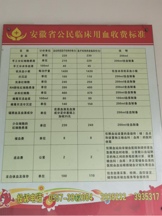 供血室:24小时在岗制(节假日正常上班),供血服务咨询电话:0557-3935232