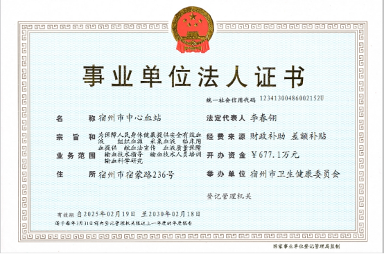 宿州市中心血站成立于1997年,单位正科级建制,核定事业编制40名,经费渠道为差额预算管理;是隶属于宿州市卫生健康委领导、具有独立法人资格的公益性卫生事业单位;是集血液采集、检测、加工、储存为一体的采供血机构,担负着宿州市“四县一区”的无偿献血宣传招募,临床供血以及输血技术指导工作。