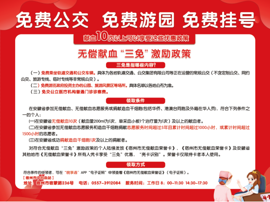 献血服务科:宿州市中心血站四楼 电话0557 3912084