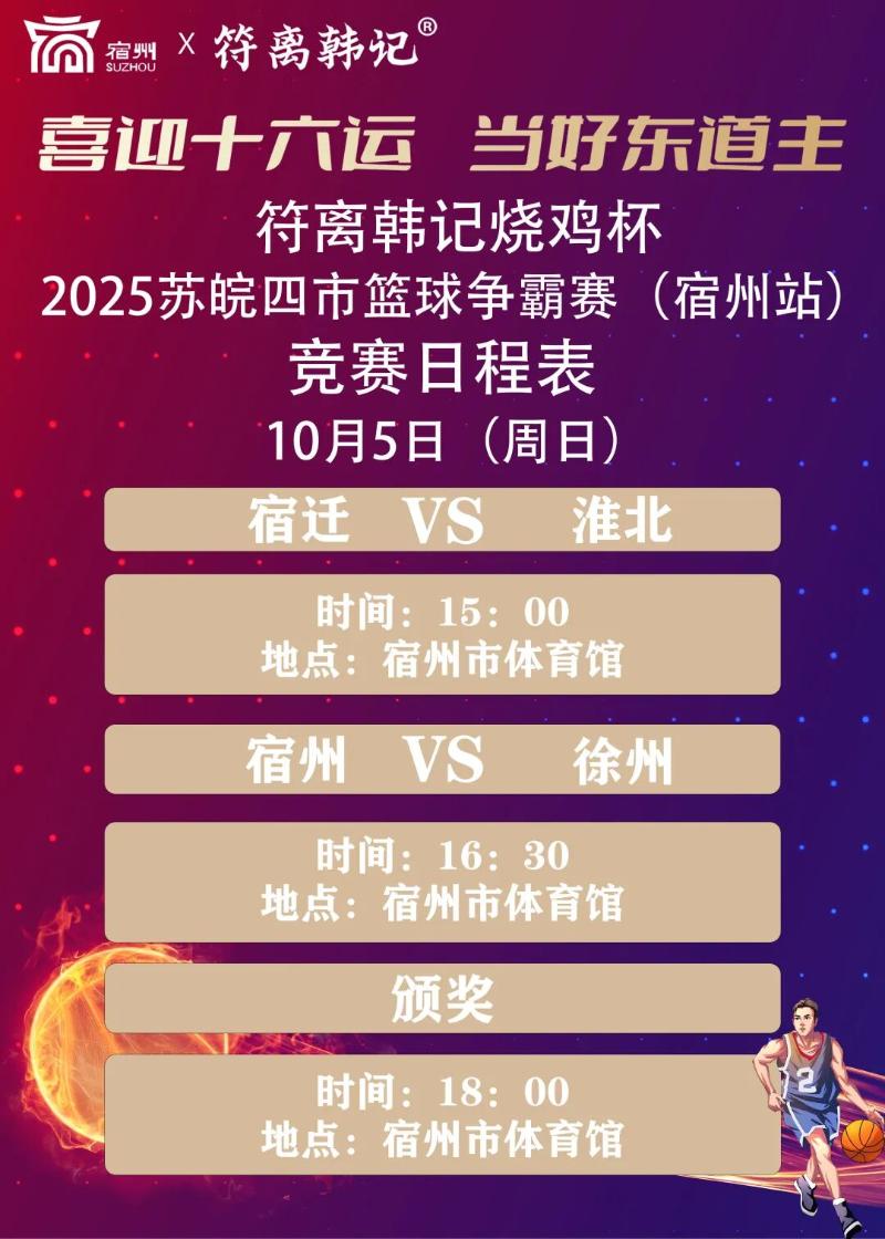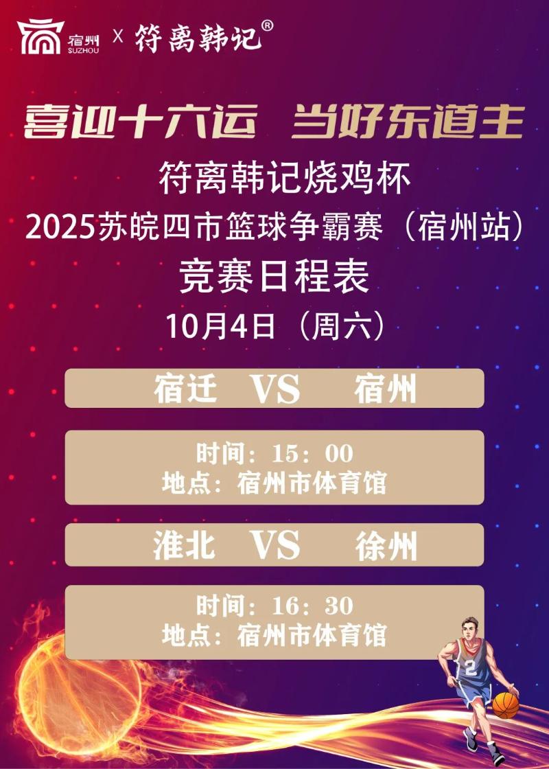 今天下午3:00!符离韩记烧鸡杯·2025苏皖四市篮球争霸赛(宿州站)启幕