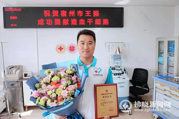 今年36岁的王振,是安徽交通控股集团公司宿州中心的工作人员,是一名无偿献血志愿者,也是两个孩子的父亲。现在,他又多了一个身份——宿州市第22例造血干细胞捐献者。