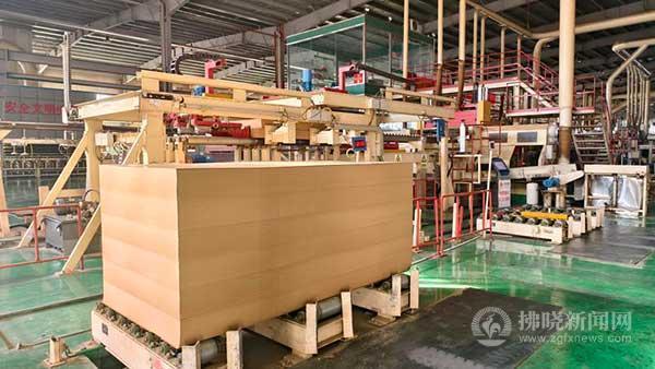 走进位于灵璧县开发区北部园区的安徽雨鑫木业有限公司,一派热火朝天的生产场面,传送带上“飞驰”着一条条原木色的纤维板,机器的轰鸣声与键盘的敲击声谱出一曲别样的乐章。