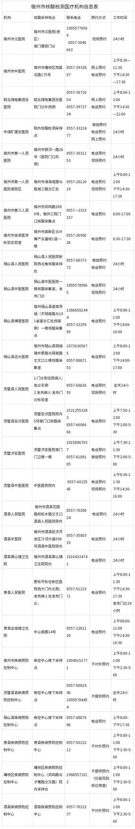 附:宿州市核酸检测医疗机构信息表及宿州市新冠肺炎疫情咨询电话