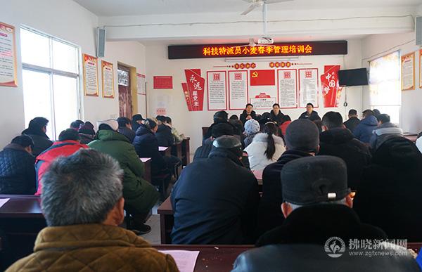 室内技术培训会上,科技特派员总结分析了今年小麦冻害严重发生的原因,指导来年从品种选择、耕地播种环节规避冻害风险,强调近期要密切关注天气预报,做好“倒春寒”的应急防控。