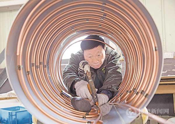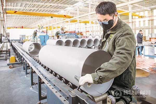 安徽大盘特种装备车辆有限公司生产车间内,工人正在加工管道。 记者 蒋帮煜 摄