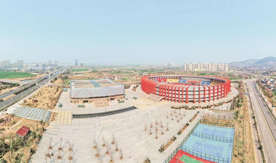 3月13日,记者航拍萧县体育中心。 记者 苏洋 摄