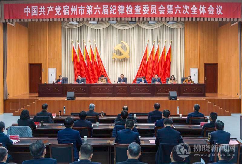2月2日,中国共产党宿州市第六届纪律检查委员会第六次全体会议在市政务中心报告厅举行。图为大会会场。 记者 苏洋 摄
